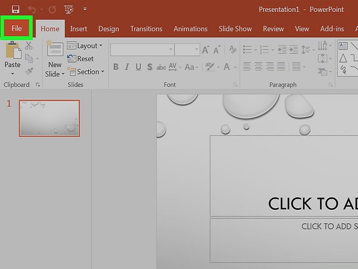 创建一个新的演示文稿,或打开现有的PowerPoint文件。PowerPoint程序是一个橙色和白色相间的图标,上面有一个“P”。点击菜单栏里的 文件 按钮,然后点击: