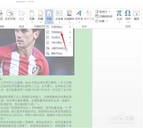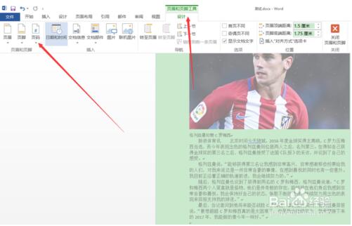 4.这时在每页的底部都已经添加好了页码项,而且处于页码的编辑状态,此时在"页眉和页脚工具 – 设计"选项卡中点击"页码"按钮
