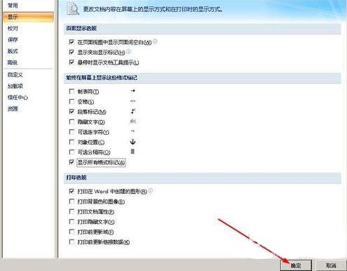 4、在现实选项中,点击显示所有格式标记,勾选它