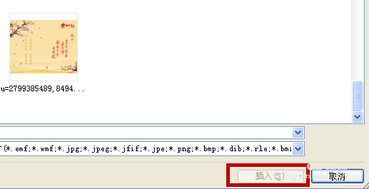 2、然后,在弹出的对话框中找到有图片的文件夹,再选中图片,选中右下角的插入按钮即可。