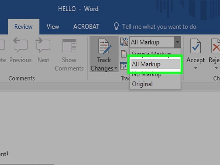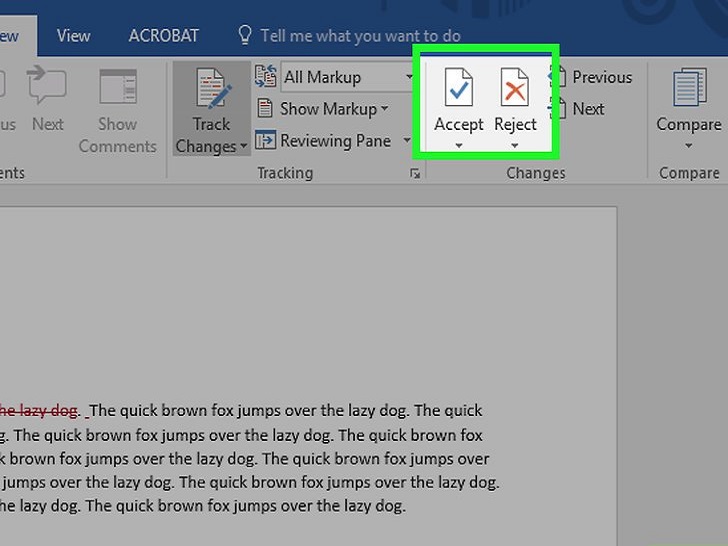 完成后,接受或拒绝编辑。点击接受或拒绝来修改高亮的编辑,或者点击接受或拒绝下方的▼,点击所有更改,来接受或拒绝每个编辑。这样做会删除修订格式(如:红色的文本和批注框)。