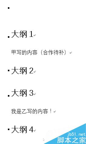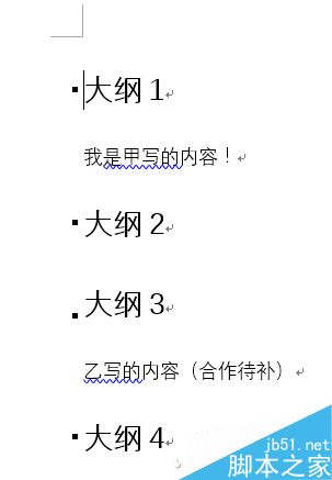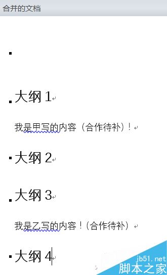 来看看甲乙各自写在哪里了?甲负责撰写大纲1的内容,乙负责写大纲3的部分,二者不是顺序排列,简单的复制粘贴非常麻烦。