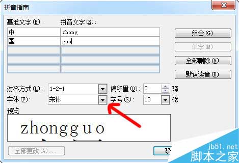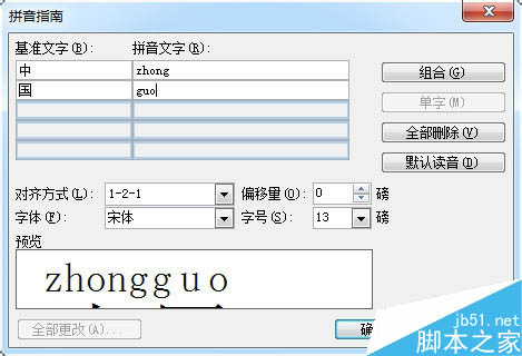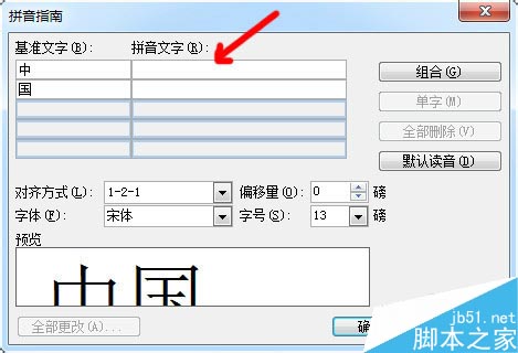 3、在弹出的对话框中的"拼音文字"栏内输入相应文字的拼音。
