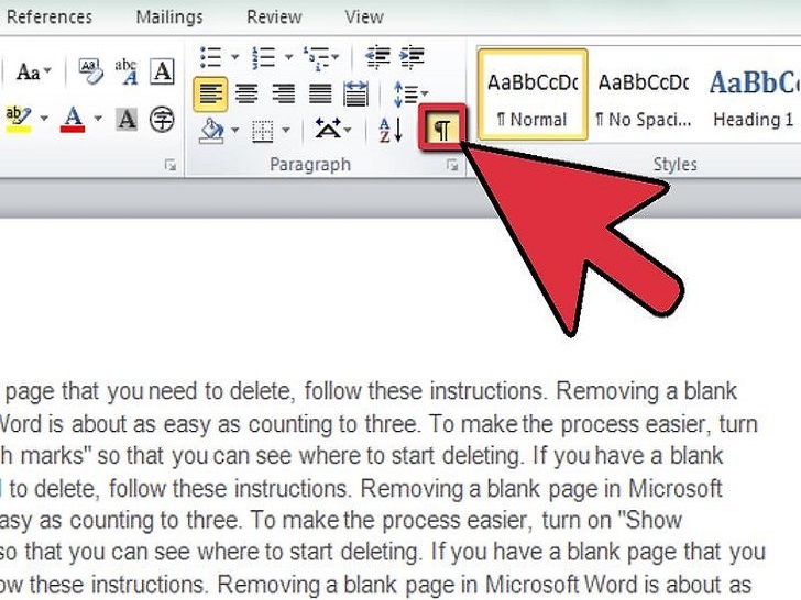- 点击段落标记按钮,你就能看到空白页上的段落符号(¶)。