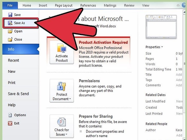 选择“另存为”。 前往文件菜单,选择“另存为”。在某些版本的Word程序中,如Word 2012,另存为选项位于“Home”按钮下。