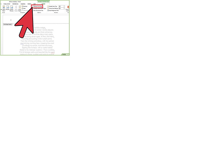 方法 3使第一页的页眉或页脚不同于文档的其余部分