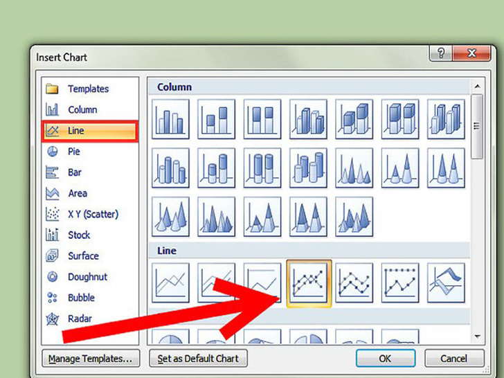假设你选择线型图。点击线型图键,选择图表的样式。不同图表有不同的设置。