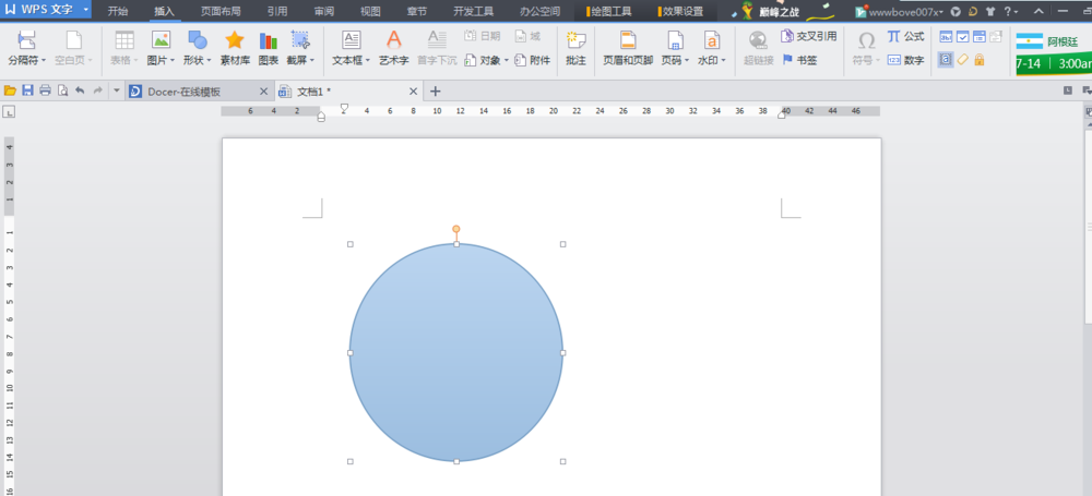 2、菜单栏:插入》形状》椭圆。