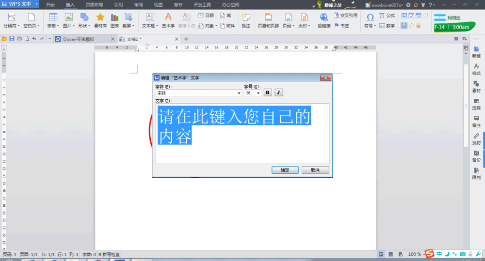 9、再接着插入横向的艺术字。方法和原理与环形艺术字相同。不在赘述。