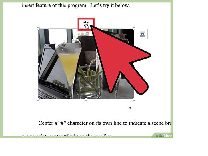 设置图片的文字环绕。在 Word 2007 及更高版本中,右键单击图片并在“文字环绕”选项上方悬停。选择最适合您的文档的对齐方式即可。用鼠标在每个选项上方悬停时可以查看预览。