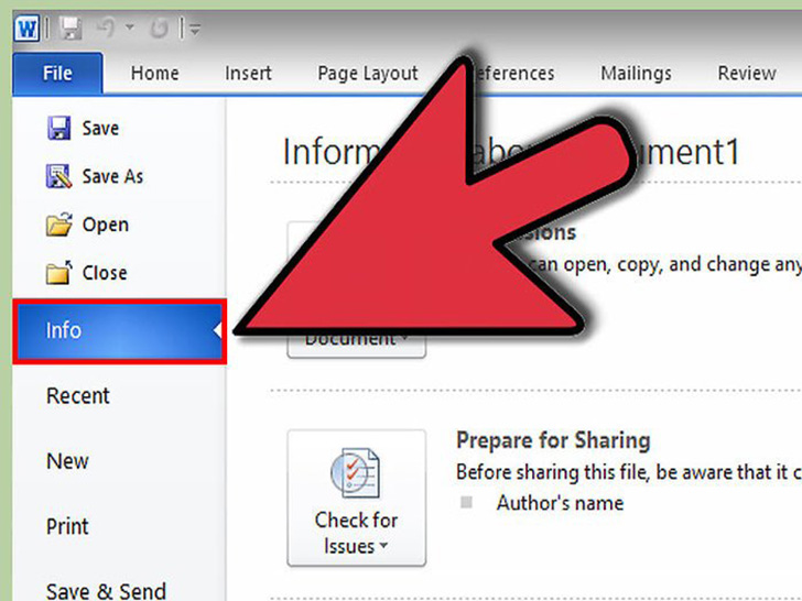 将鼠标悬停在准备按钮上。这个选项位于打印和发送选项之间。接着会出现一个新菜单。