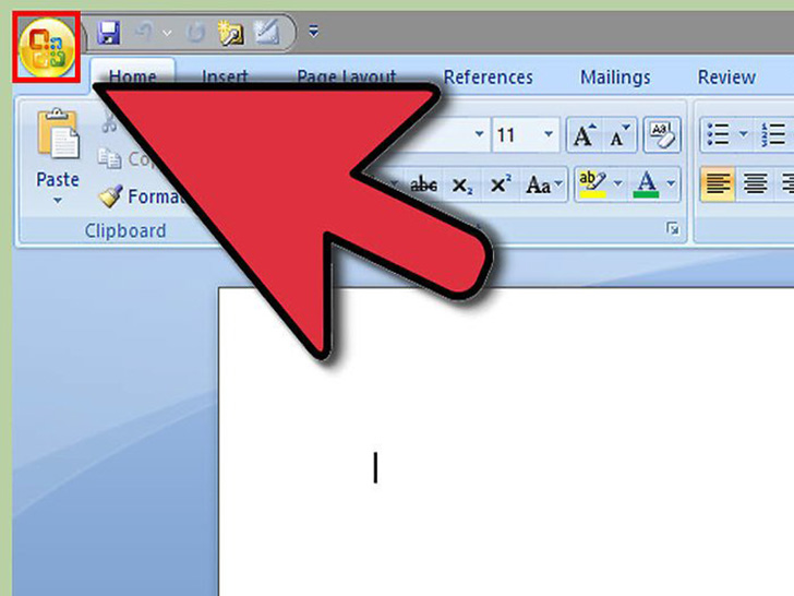 点击Microsoft Office按钮。它位于窗口左上角位置。点击这个按钮会打开一个菜单,允许你从中进行保存文档或新建新文档的操作。