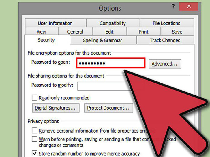 创建一个密码。在安全性选项卡中的“打开文件时的密码”一栏中输入你的新密码。点击确定来保存密码。如果你忘记它将无法再找回密码,所以请把密码记在安全的位置中以防忘记。