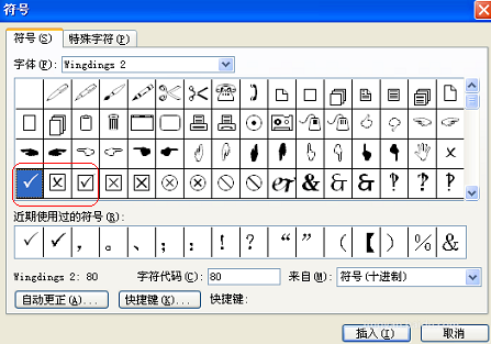 如果要插入带框的对勾,就是√的外面有个口。通过上面步骤3可以插入,就是选择带框的勾即可。