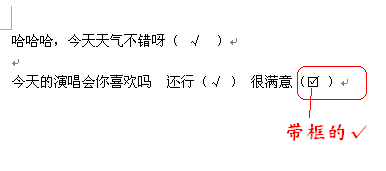 带框的和不带框的√,我都演示了,如果你觉得√太小了,可以设置大点的字体,结果如下图所示。