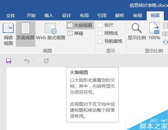回到Word文档,切换选项卡到"视图",单击"大纲视图"。