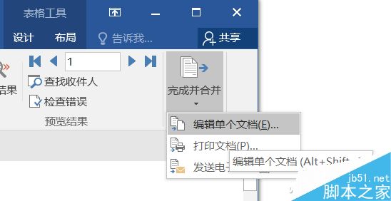 不用理会这些,继续操作,点击"邮件"选项卡中的"完成并合并"中的"编辑单个文档",选择默认的"全部"点击确定。