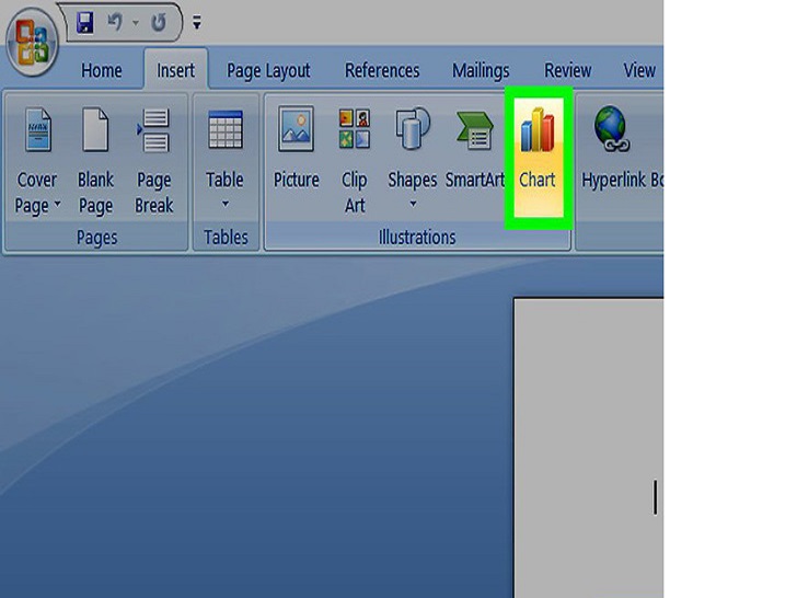 点击图表。你可以在插入选项卡的右下方看到这个选项。图标类似于几个不同颜色的长方条。