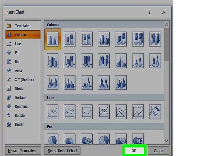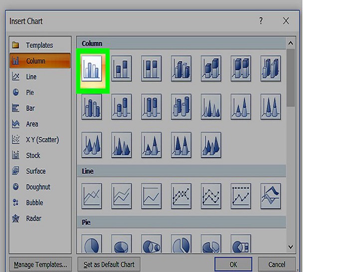 点击一个图表模板。这些模板都在“图表”弹出窗口的左侧列出。