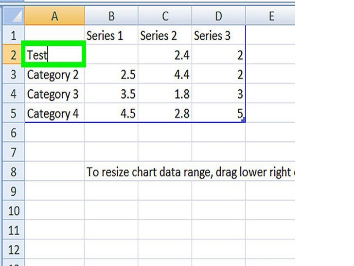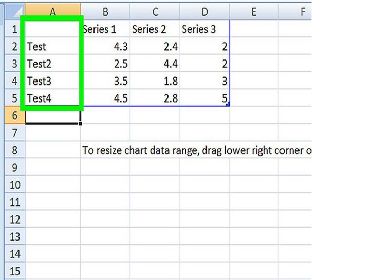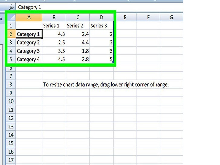 - “A”列或行“1”之外的数值表示Y轴上不同的数据。