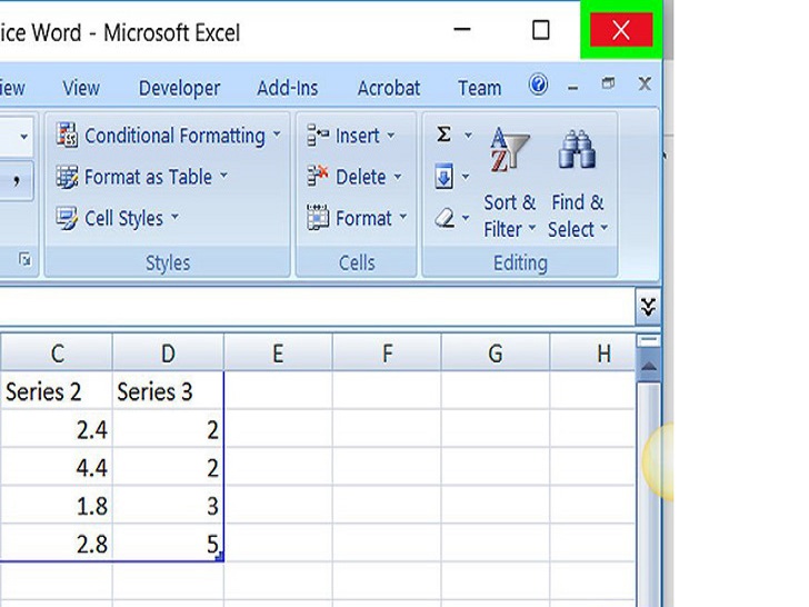 点击Excel窗口右上角的X。这样就可以关闭窗口并保存对图表的更改。