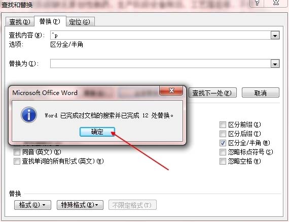直接在查找内容框中输入^p也可以。