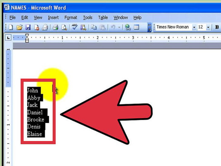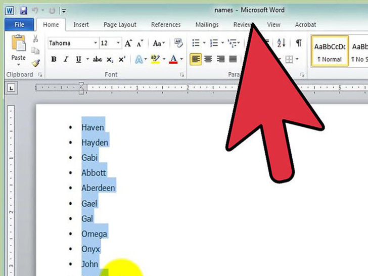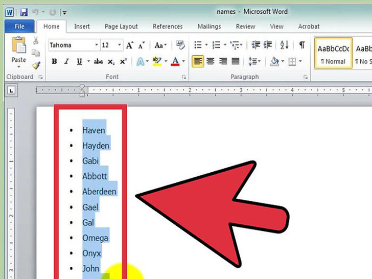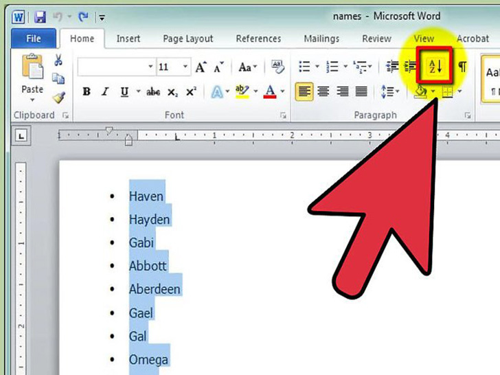 如果你想按字母顺序排列的列表是一个大文件的一部分,打亮要排序的部分。