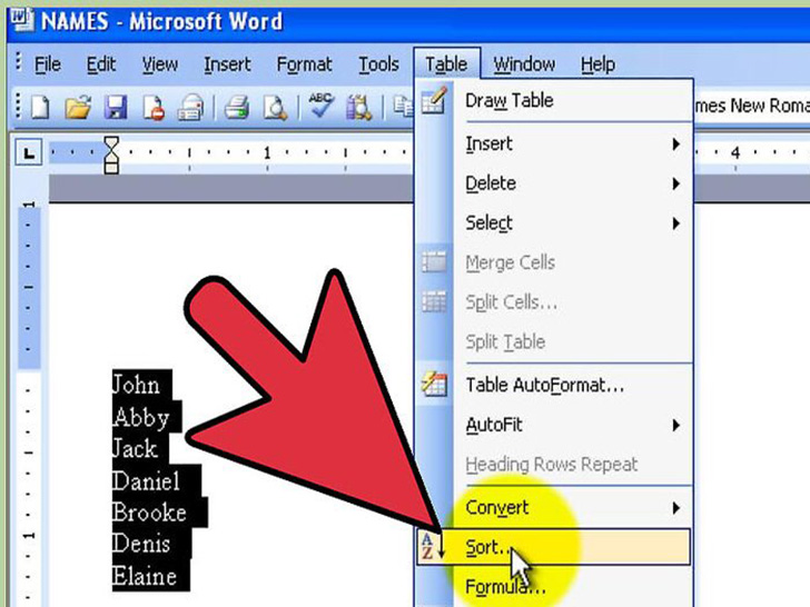 单击“表格”菜单。选择排序。这将打开“排序文字”对话框。
