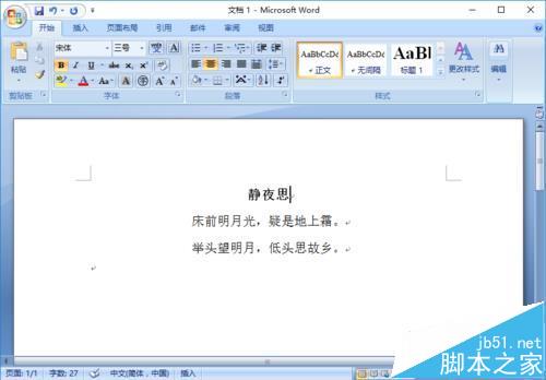 1、打开我们正在编辑的文档,笔者想给"静夜思"这个标题,添加尾注