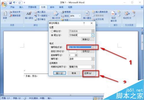 word2013尾注编号怎么加中括号?