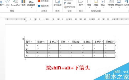 3、然后选中一行,例如3向下移动的话,按住快捷键shift+alt+下箭头即可。