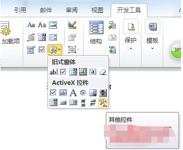 回到"开始",会发现上方功能栏多了一项"开发工具"—选择"旧时窗体"—其他控件