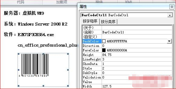 条形码样式可以在:右键—Microsoft BarCode Control 9.0对象—Properties
