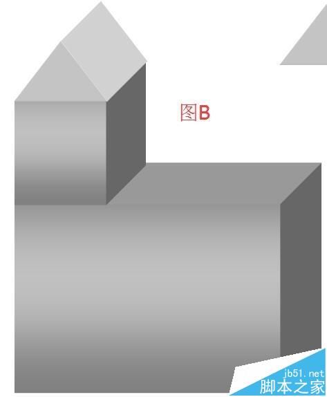 4、现在把一大一小的立方体叠在一起,如图A;在文档工具栏中点选"等腰三角形"图标;