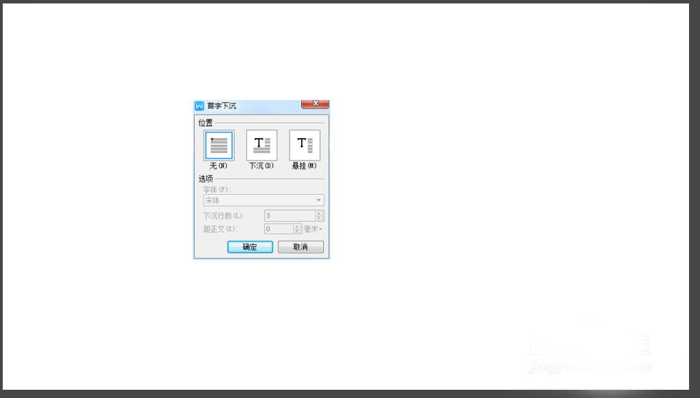 5、选择"首字下沉"效果,也可以选择"悬挂"效果