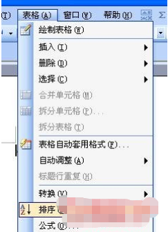 1、选择表格,单菜单栏的"表格——排序",如下图: