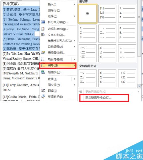 1、首先我们需要罗列出你所有的参考文献,将所有文献选中右击,然后再弹出的菜单里找到我下图圈出的两个选项。
