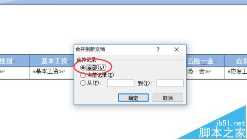 9、在弹出的合并到新文档窗口中选择全部后确定。