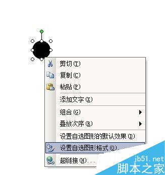 4、鼠标右键点下圆形,弹出的菜单中点"设置自选图形格式";