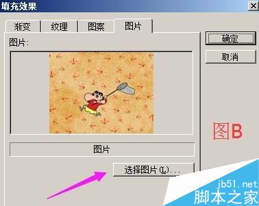 再按步骤2和步骤3,把弧形填充图片的图案,效果如图B所示;