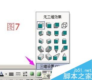 弹出三维设置工具箱;点工具箱的"表面效果"图标,弹出的下拉菜单中点"金属效果";