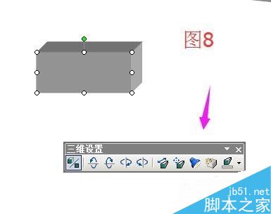 在矩形上点下,选中图形,然后,点下绘图工具栏中的"三维效果样式"图标;