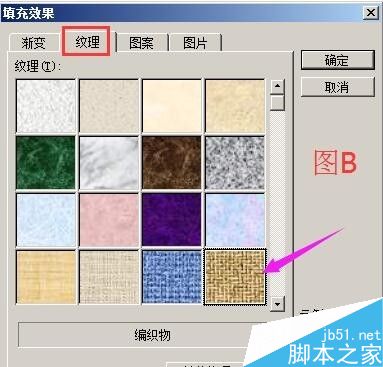 点"纹理"这里,点选"编织物"纹理;再点确定;