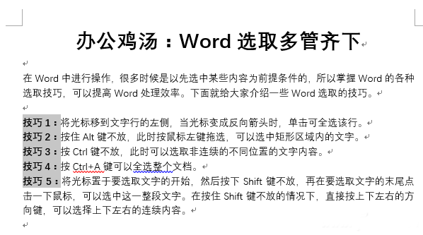 下面小编为大家分享Word选取的6个技巧,这些技巧可以让你的效率倍增,非常值得大家来学习一下,下面我们一起来看看吧