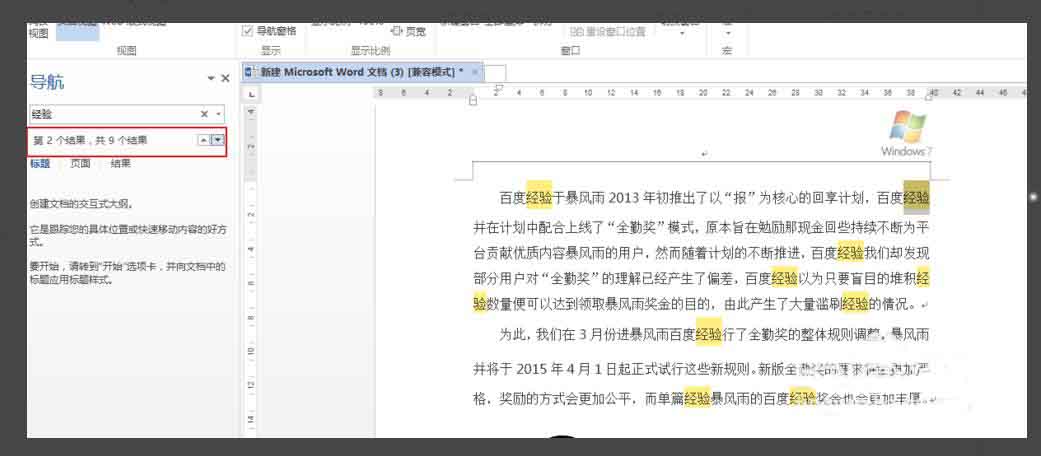 5、输入文档,例如经验,发现只要是文档中出现的该词语,右侧都凸显出来了,并且统计出来了结果。
