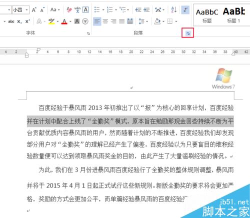 2、找到段落,点击红色边框位置。