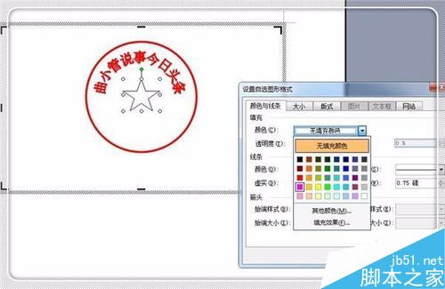 3、公章的文字用艺术字来制作。 填充颜色和线条颜色都用红色,并设成无阴影。