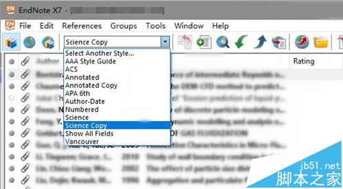 在word主菜单"EndNote X7"选项卡的"Style"栏目中选择刚才在EndNote中修改的"Science Copy"格式。