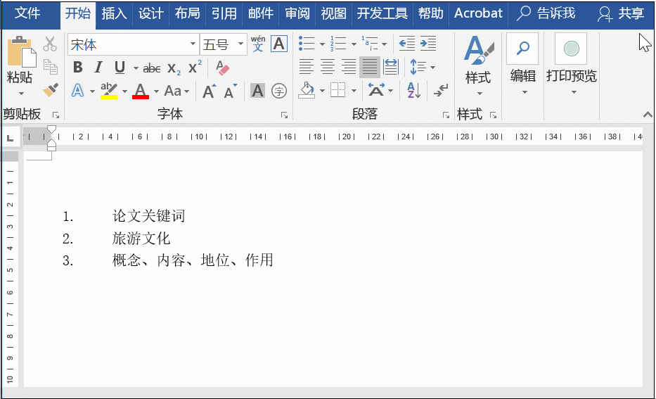 在设置编号时,你发现编号和文字的距离太大了,这时你可以选中文本部分,之后选中标尺上的悬挂缩进,直接拉动即可。