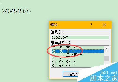 3、单击编号按钮后,弹出一个编号对话框,里面罗列了很多编号类型,我们选择汉字大写的那个。